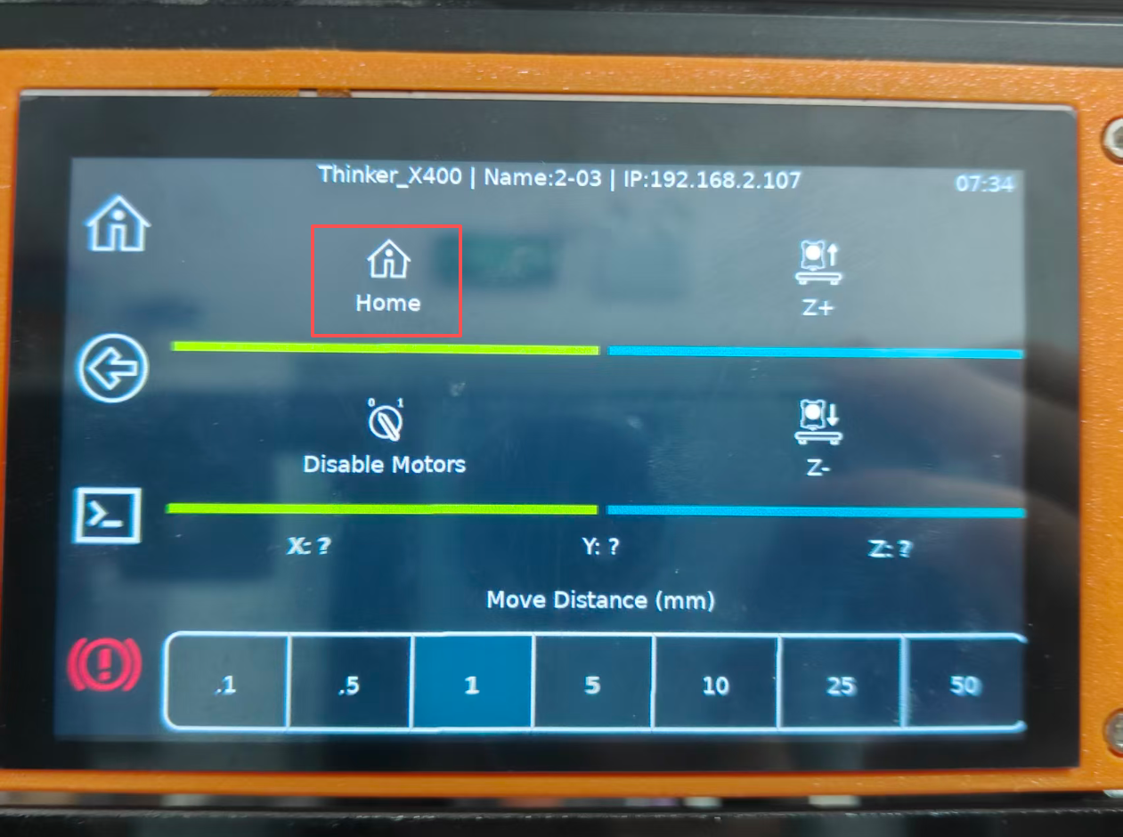 2.Initiate the homing function and manually press the X-axis limit switch. Observe whether it successfully triggers and stops the axis movement.