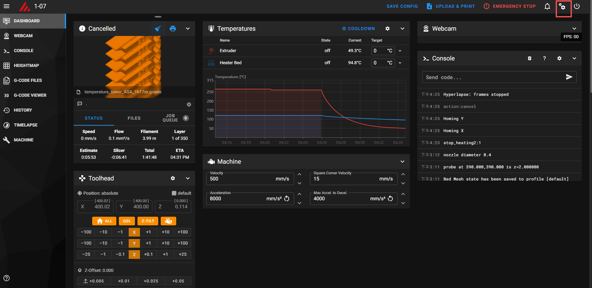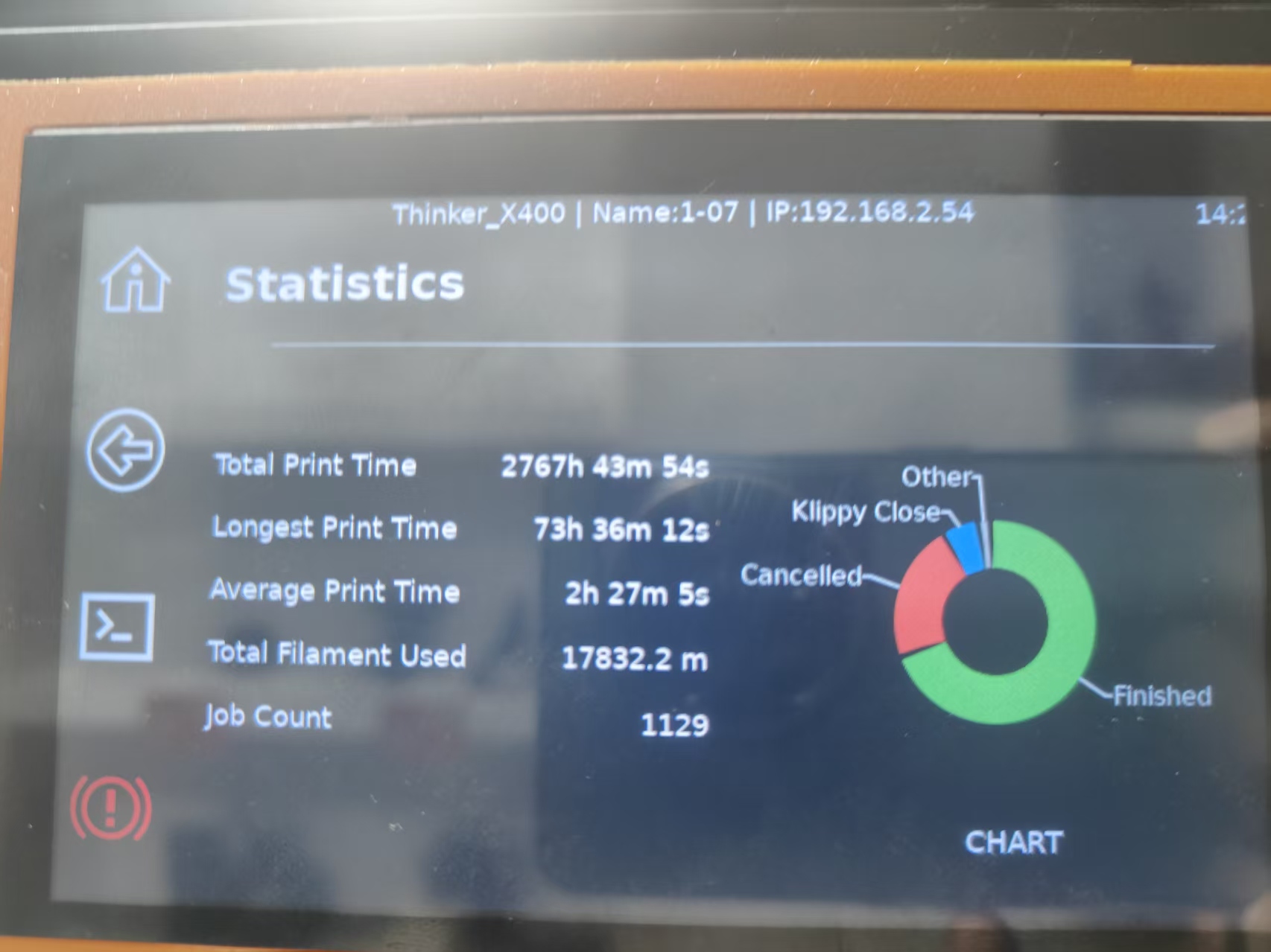 The issue may occur because Chamber Heating is enabled in settings, but your Think X400 printer is not equipped with this hardware module.