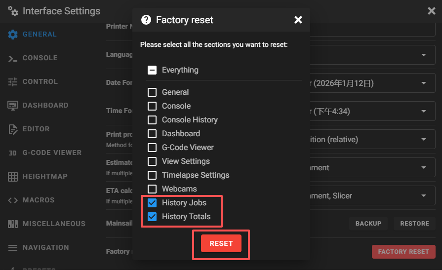 4.Select "History Tasks" and "History Statistics" to initialize them.