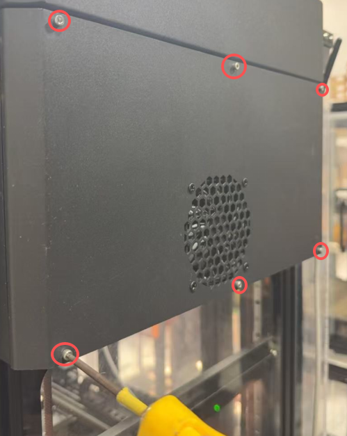 3.Unscrew the left and right fixing screws on the top cover and remove the outer cover of the Z motor.