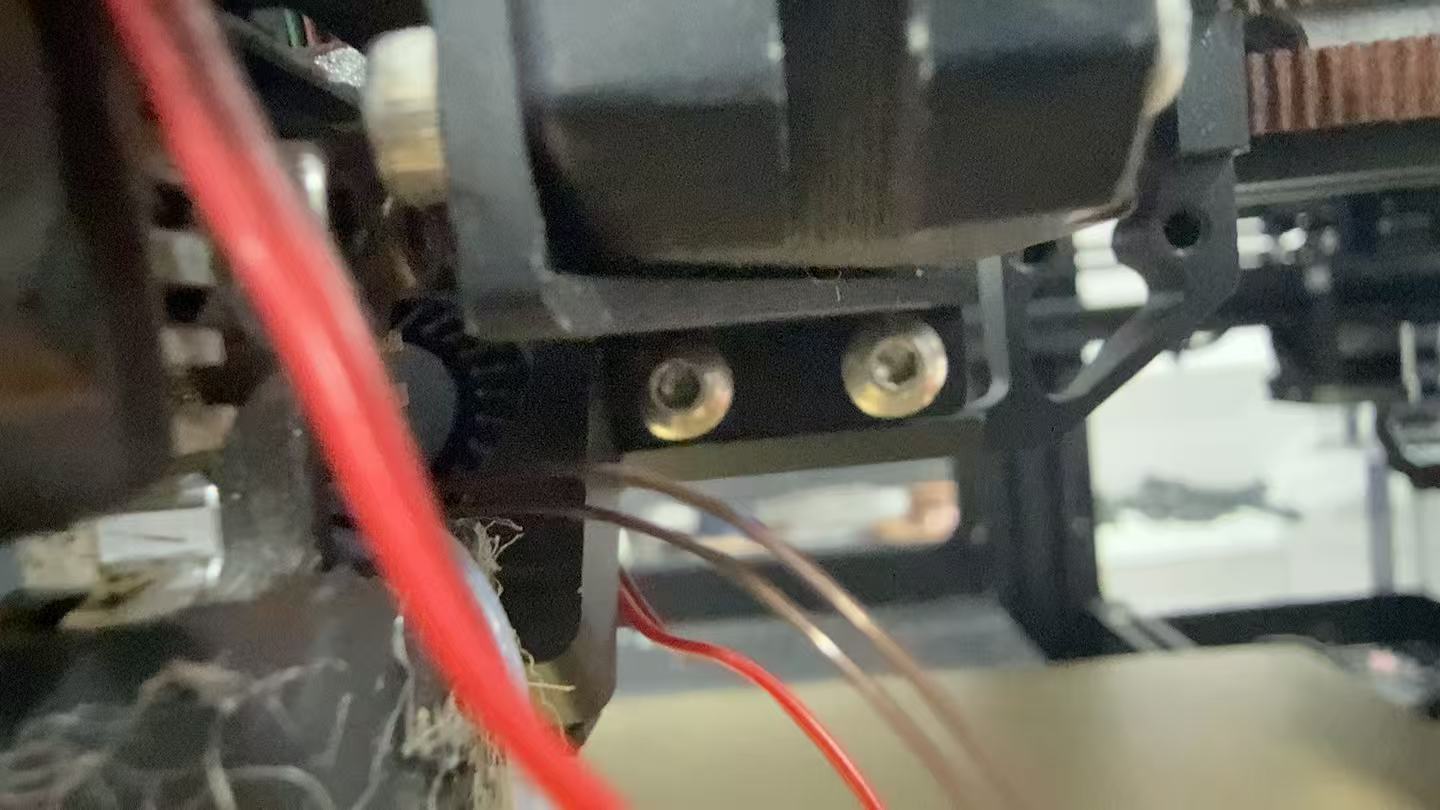 2.Using a 2.5mm hex wrench, detach the extruder mounting bracket cover and its screws, placing them aside.