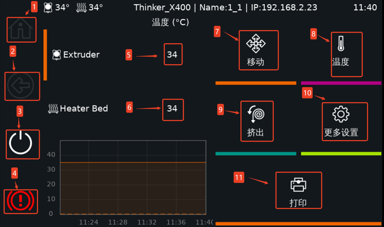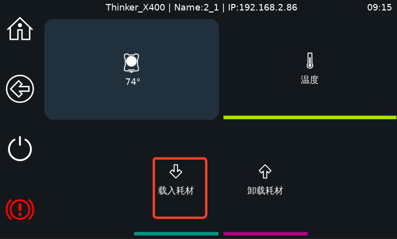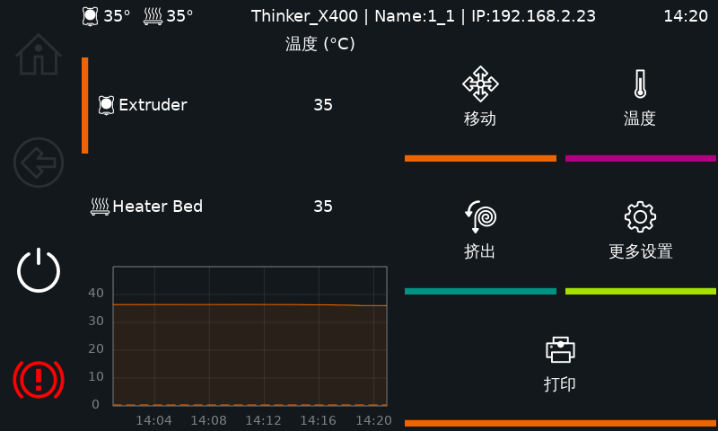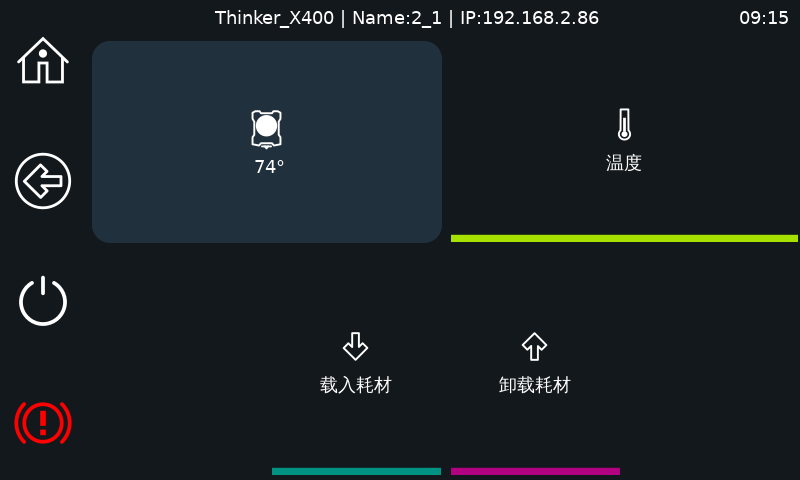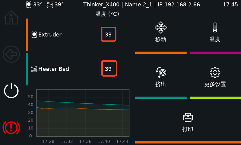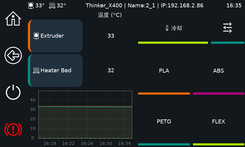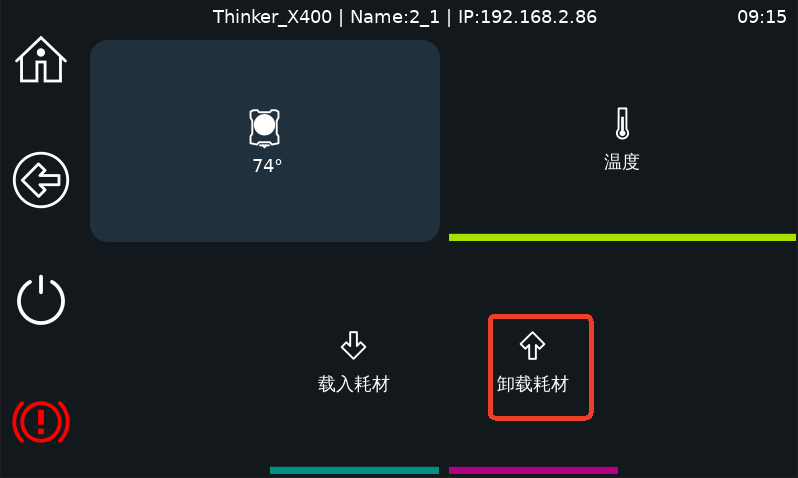 冷却:点击之后喷嘴和热床温度将会缓慢降到环境温度