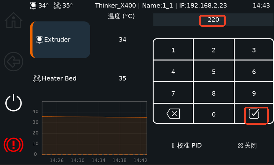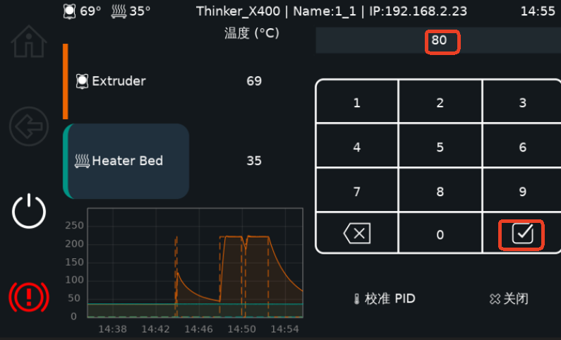 加热PID校准:对喷嘴挤出温度的校准测试,当挤出温度不稳定时可进行校准