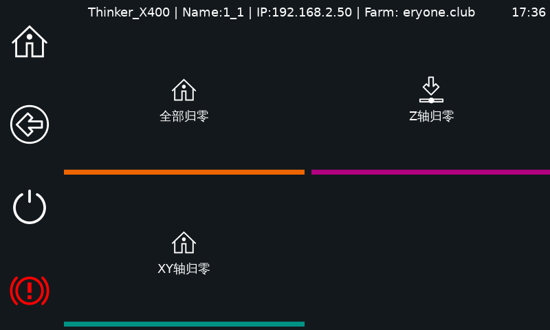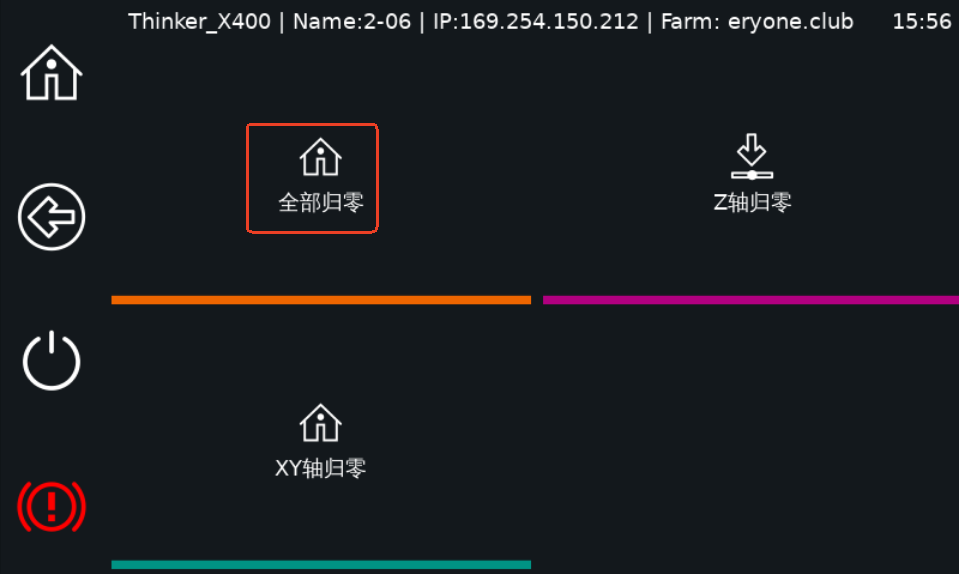 Z轴归零:Z轴恢复到默认值(X:200 Y:200 Z:3),只有先进行XY轴调零才能进行Z轴调零