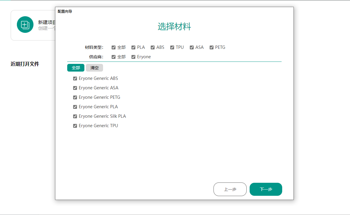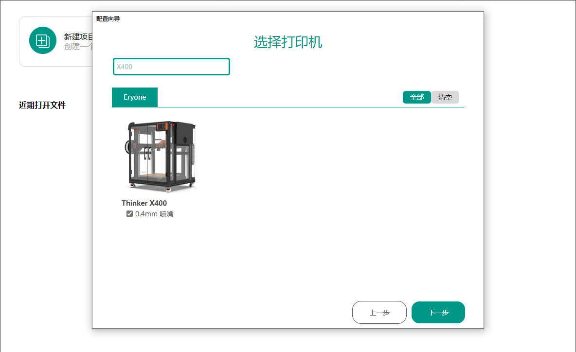 2.搜索并选择Thinker X400,勾选Thinker X400 的耗材打印参数